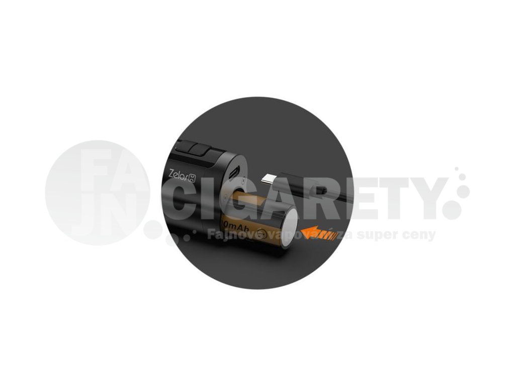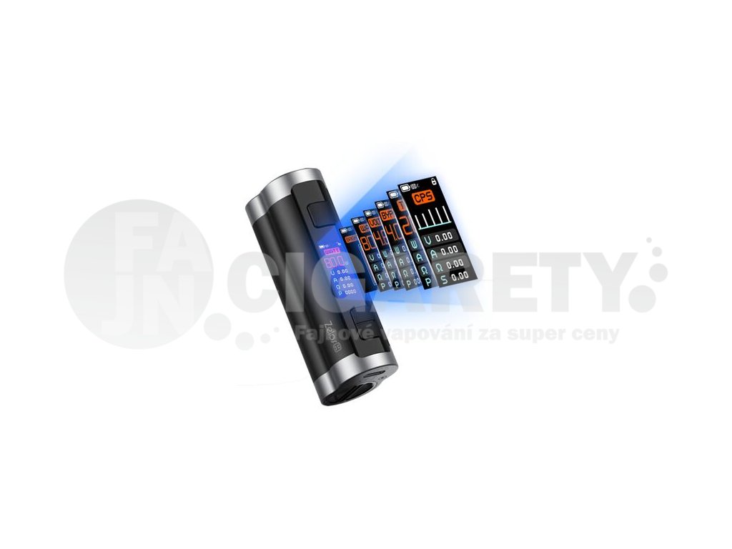 Ve spodní části modu se nachází slot pro baterii typu 18650. Díky pohonu na externí baterii se můžete těšit na rychlou odezvu při žhavení, bezproblémový chod a efektivní provoz. Díky pohonu na externí baterii se můžete těšit na maximální výkon modu až 80 W, díky čemuž dokáže uspokojit všechny typy vaperů. Baterie není součástí balení a je nutné dokoupit ji samostatně.