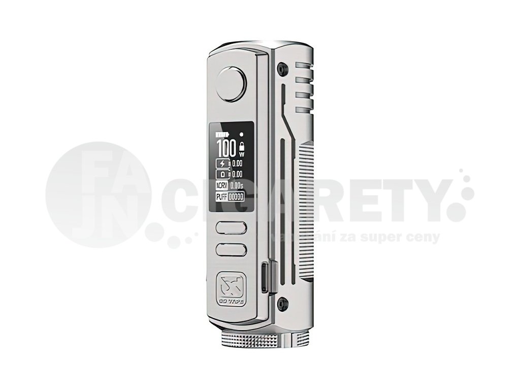 Parametry a specifikaceRozměry: 90 x 30 mm Kapacita baterie: Není součástí Závit: 510 Režimy: VW, Bypass Metody spínání potahu: Manuální tlačítkem Výstupní napětí: 1 - 8 V Výstupní výkon: 5 - 100 W Podporovaný odpor: 0,08 - 3,5 ohm Typ baterie: 18650/21700 Způsob nabíjení: USB-C 5V/2A Regulace výkonu: Ano Objem tanku (Claromizéru): Není součástí Styl potahování: dle použitého atomizéru Odpor žhavících hlav: Nejsou součástí Regulace přívodu vzduchu (Airflow): dle použitého atomizéru Hmotnost: 88g Barva: Stainless Steel (Stříbrná) Materiál: Hliníková a zinková slitina, nerezová ocel |