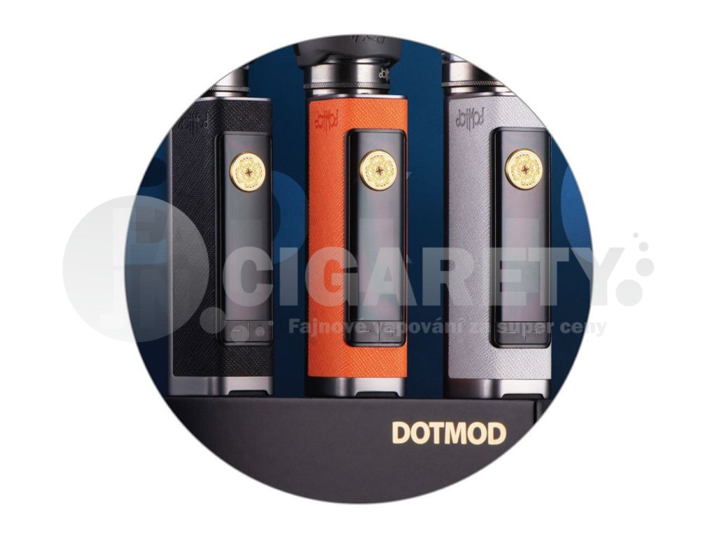 Kvality výrobce Dotmod asi není třeba dlouze představovat. Výrobce uvádí na trh další špičkový mod Dotmod dotBox 100W, který dokáže ohromit bohatým nastavením a podporou hned dvou typů baterií. Výrobce přináší krásně zpracovaný grip s ergonomickým tělem vyrobeným z kvalitní zinkové slitiny v kombinaci s koženým potahem. Dokonalou souhru materiálů pak dokresluje také prvotřídní elektronika s podporou obrovského množství výstupních režimů pro co nejlepší výsledky při vapování a zvýšená odolnost těla vůči vodě podle certifikace IP67. Díky závitu 510 v horní části dodá perfektní výsledky s jakýmkoliv atomizérem se stejným typem uchycení. Dotmod dotBox 100W je přehlídkou inovativních funkcí a krásného designového zpracování v jednom těle.