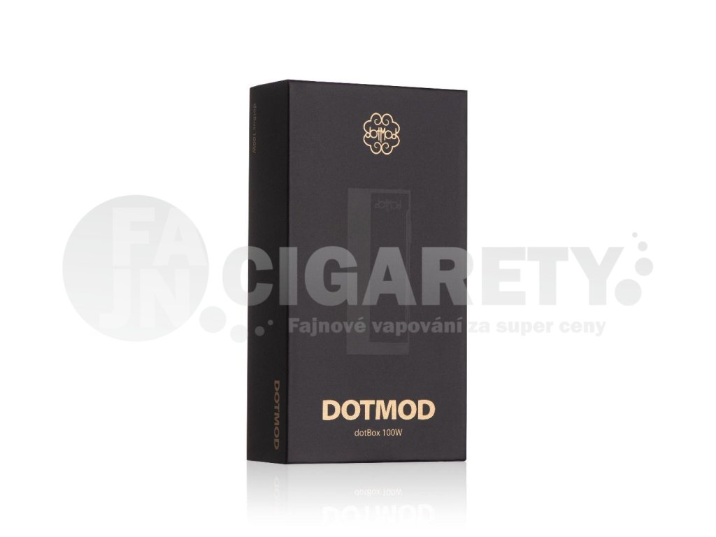 Kvality výrobce Dotmod asi není třeba dlouze představovat. Výrobce uvádí na trh další špičkový mod Dotmod dotBox 100W, který dokáže ohromit bohatým nastavením a podporou hned dvou typů baterií. Výrobce přináší krásně zpracovaný grip s ergonomickým tělem vyrobeným z kvalitní zinkové slitiny v kombinaci s koženým potahem. Dokonalou souhru materiálů pak dokresluje také prvotřídní elektronika s podporou obrovského množství výstupních režimů pro co nejlepší výsledky při vapování a zvýšená odolnost těla vůči vodě podle certifikace IP67. Díky závitu 510 v horní části dodá perfektní výsledky s jakýmkoliv atomizérem se stejným typem uchycení. Dotmod dotBox 100W je přehlídkou inovativních funkcí a krásného designového zpracování v jednom těle.