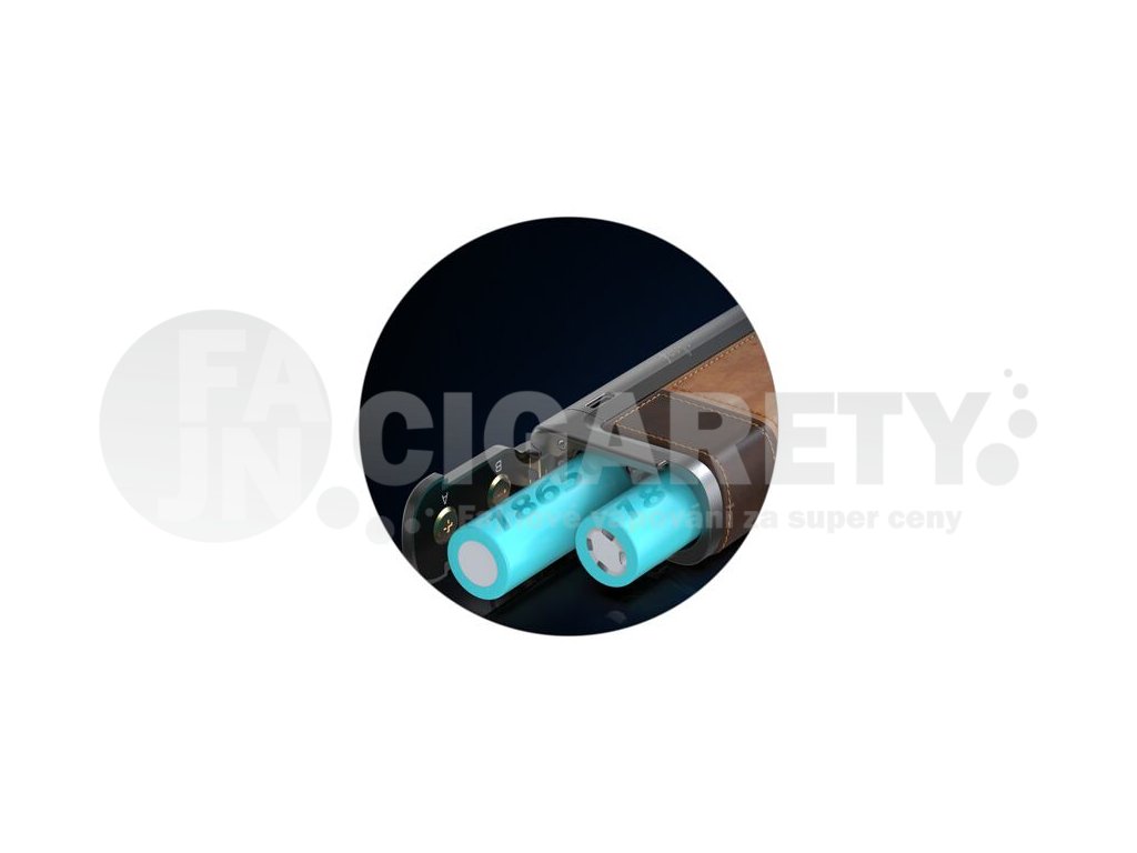 Ve spodní části se nachází slot pro dvě externí baterie typu 18650. Po vložení vlastních baterií můžete začít využívat mod naplno. Nespornou výhodou je také podpora dobíjení baterií přímo v modu. Jednoduše připojíte USB-C kabel k modu a začnete dobíjet pomocí adaptéru, nebo počítače. Díky pohonu na dvě baterie se můžete těšit na bezproblémový chod a rychlý náběh žhavení.