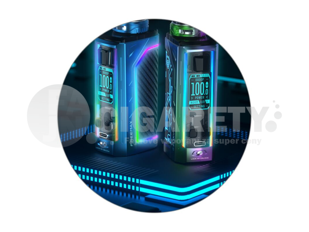Luxusně zpracovaný a futuristický grip s ohromujícím výstupním výkonem. Tak by se dal ve zkratce definovat překrásný mod Freemax Maxus 2. Tradiční box mod Maxus 2 láká také na slot pro vlastní externí baterie, pokročilou nabídku výstupních režimů a rozsáhlé možnosti v nastavení podsvícení celého modu. Díky svému ergonomickému zpracování a kvalitně zpracované kovové konstrukci se perfektně drží v ruce. Jeho rozměry činí jen 51.9 x 31 x 89.5 mm. Tělo modu potom ukrývá slot pro vložení dvou externích baterií typu 18650, díky pohonu na dvě baterie zvládne mod pracovat s obrovským výstupním výkonem a zvládne také hladký chod s rychlým náběhem žhavení. Baterie budete moci pohodlně dobíjet přímo uvnitř modu, na jeho těle se totiž nachází USB-C port s podporou nabíjení s parametry 5V / 2A. Mimo slot pro baterii ukrývá tělo modu vysoce kvalitní elektronický čip FM CHIP 3.0. Díky perfektní elektronice se můžete těšit na snadnou uživatelskou obsluhu a pohodlné nastavení všech parametrů.