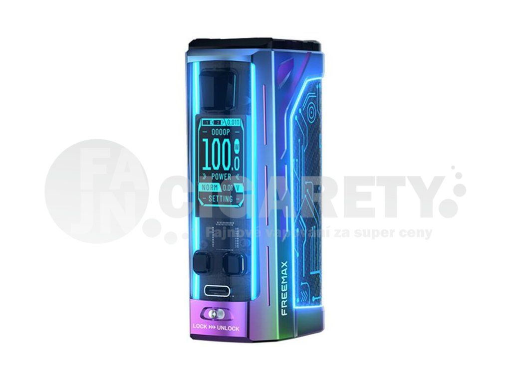 Luxusně zpracovaný a futuristický grip s ohromujícím výstupním výkonem. Tak by se dal ve zkratce definovat překrásný mod Freemax Maxus 2. Tradiční box mod Maxus 2 láká také na slot pro vlastní externí baterie, pokročilou nabídku výstupních režimů a rozsáhlé možnosti v nastavení podsvícení celého modu. Díky svému ergonomickému zpracování a kvalitně zpracované kovové konstrukci se perfektně drží v ruce. Jeho rozměry činí jen 51.9 x 31 x 89.5 mm. Tělo modu potom ukrývá slot pro vložení dvou externích baterií typu 18650, díky pohonu na dvě baterie zvládne mod pracovat s obrovským výstupním výkonem a zvládne také hladký chod s rychlým náběhem žhavení. Baterie budete moci pohodlně dobíjet přímo uvnitř modu, na jeho těle se totiž nachází USB-C port s podporou nabíjení s parametry 5V / 2A. Mimo slot pro baterii ukrývá tělo modu vysoce kvalitní elektronický čip FM CHIP 3.0. Díky perfektní elektronice se můžete těšit na snadnou uživatelskou obsluhu a pohodlné nastavení všech parametrů.