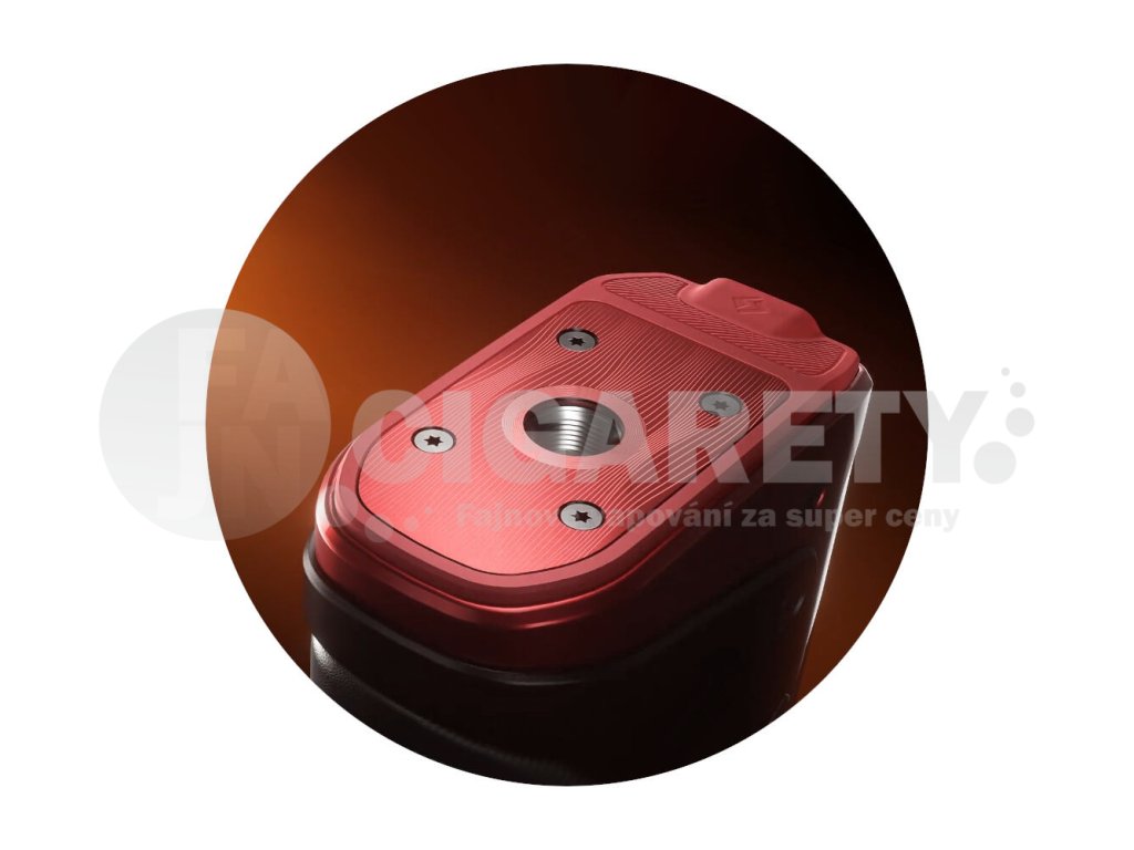 Horní velká platforma zdobená texturovaným designem je osazena vnitřním závitem typu 510. Tento typ závitu zajišťuje snadnou a bezproblémovou kompatibilitu modu s drtivou většinou dnešních atomizérů na tovární žhavící hlavy. Pokud však toužíte po dokonalém přizpůsobení, můžete sáhnout po některém z DIY atomizérů, které umožňují připojení vlastní spirálky.