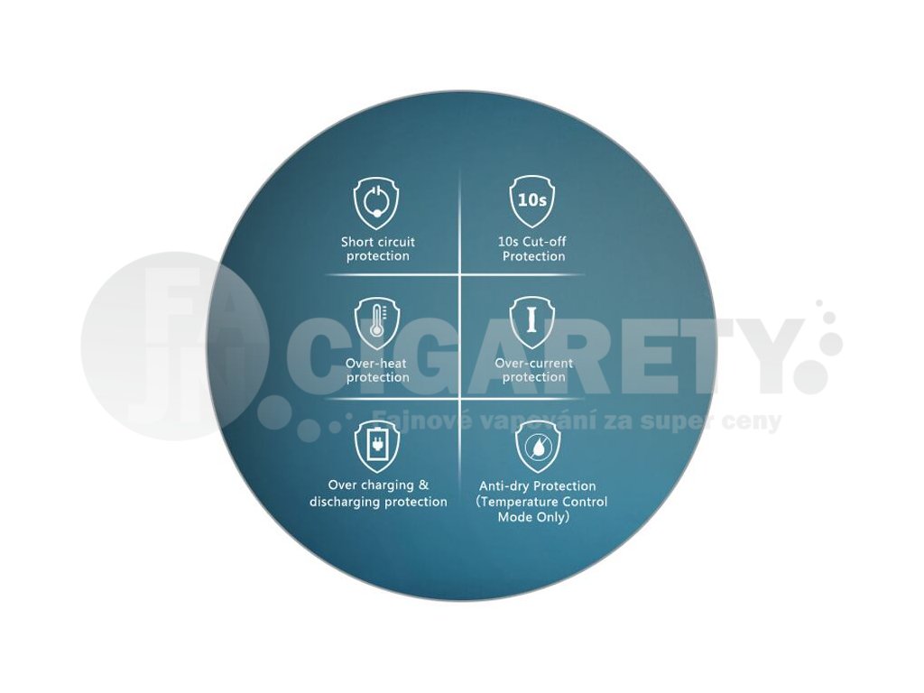 O bezpečný provoz a rychlý náběh žhavení se postará vestavěný čip AS. Tento pokročilý čip umožňuje skutečně extrémně rychlý náběh žhavení. Ten se zastavil na 9 ms. Nechybí bezpečný provoz díky řadě ochran, během nabíjení je vaše baterie chráněna proti přebití a podbití, během používání jste zase chráněni proti zkratu, nebo příliš dlouhému žhavení. Nechybí ani kontrola e-liquidu u spirálky v TC režimu. Co se týče režimů, na výběr jich je celá řada. Nechybí klasický režim výkonu, nebo teplotní režimy pro niklové, titanové a nerezové spirálky. Pokročilejší uživatelé si mohou zvolit režimy VPC, TCR a Bypass. Všechny parametry a režimy si nastavujete pohodlně pomocí velkého displeje v přední části gripu. Ikony jsou krásně čitelné a skvěle se nastavuje i na slunci. GeekVape Aegis Mini je po všech stránkách dokonalý mod, který si zasluhuje vaši pozornost.