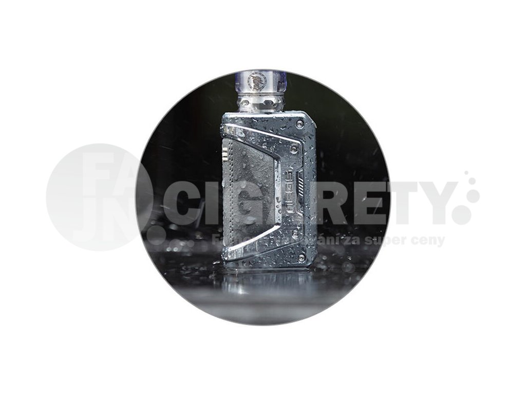 GeekVape L200 přichází s trojitou zvýšenou ochranou a odolností vůči vnějším vlivům. Mod je voděodolný a prachuvzdorný dle certifikace IP68. Rovněž je také nárazuvzdorný a nabídne zvýšený rozsah pracovní teploty, přičemž bude fungovat bez problému při teplotách -20 - 50 °C. Mod se tak skvěle hodí do jakéhokoliv počasí a do náročnějšího terénu, do prašného pracovního prostředí, nebo pro většinu outdoorových aktivit.