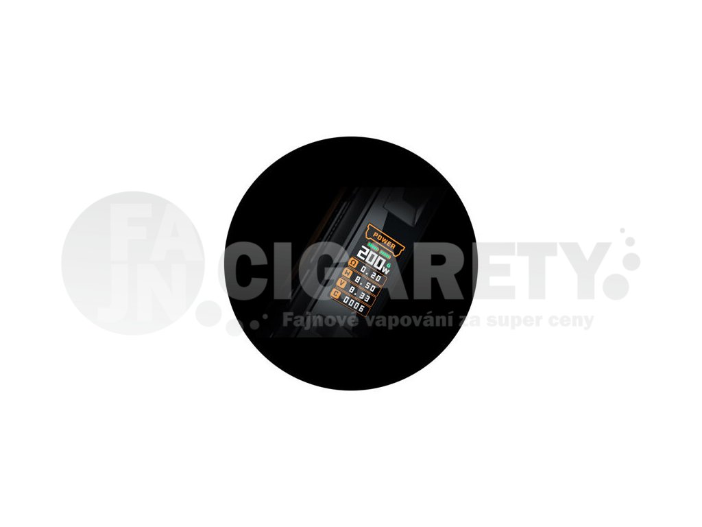 Díky pohonu na dvě baterie se můžete těšit nejenom na extrémně rychlý náběh žhavení, ale také na vysoký výstupní výkon. Ten totiž dosahuje až 200 W. Mod tak bez problému uspokojí i ty nejnáročnější vyznavače cloud chasingu a přímého potahování do plic. Výkon si můžete pohodlně regulovat pomocí regulačních tlačítek v rozpětí 5 - 200 W. Nastavení celého modu je nesmírně snadné a intuitivní.
