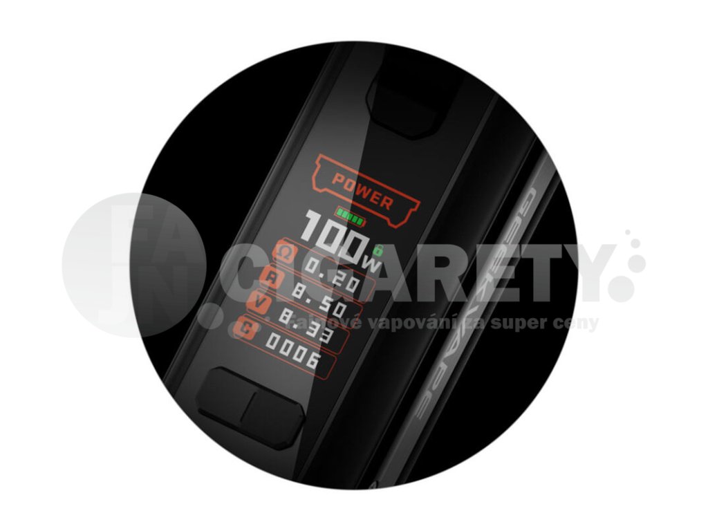 GeekVape M100 je kompaktní elektronický grip s integrovanou baterií od výrobce GeekVape. Jedná se o nástupce modelu Aegis Mini. Přináší hned několik vylepšení v čele s trojitou odolností těla vůči vnějším vlivům, vysokým výstupním výkonem a vyšší kapacitou baterie. Kvalitně zpracovaná konstrukce nabídne odolnost vůči vodě dle certifikace IP68, vůči prachu dle stejné certifikace a vůči nárazu. Díky zaoblené zadní části mod perfektně padne do ruky a pohodlně se používá. Uvnitř těla se potom nachází integrovaná baterie se solidní kapacitou 2500 mAh, která se postará o pohodové používání v průběhu dne, ale také o vysoký výstupní výkon, který lze regulovat v rozmezí 5 - 100 W.