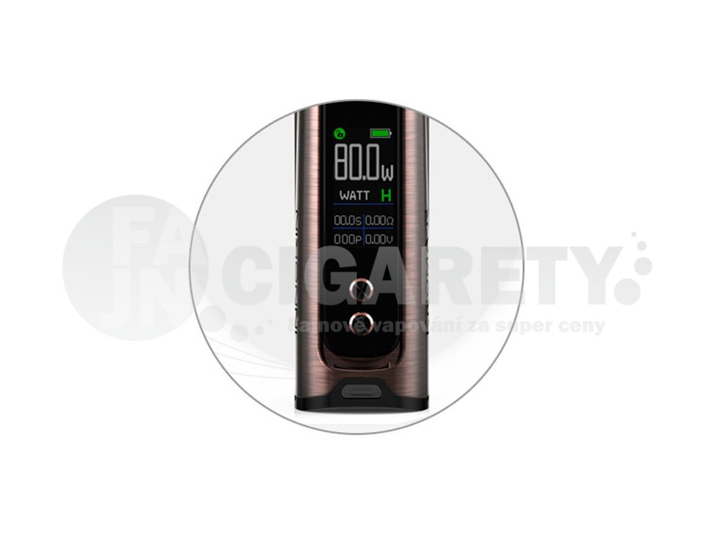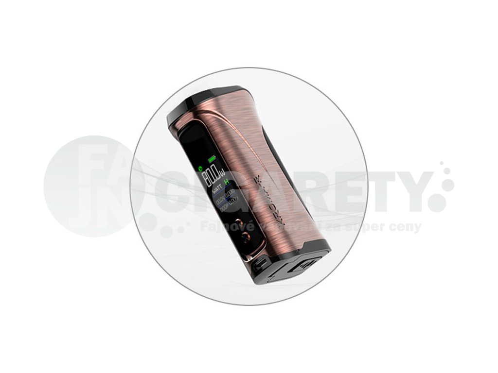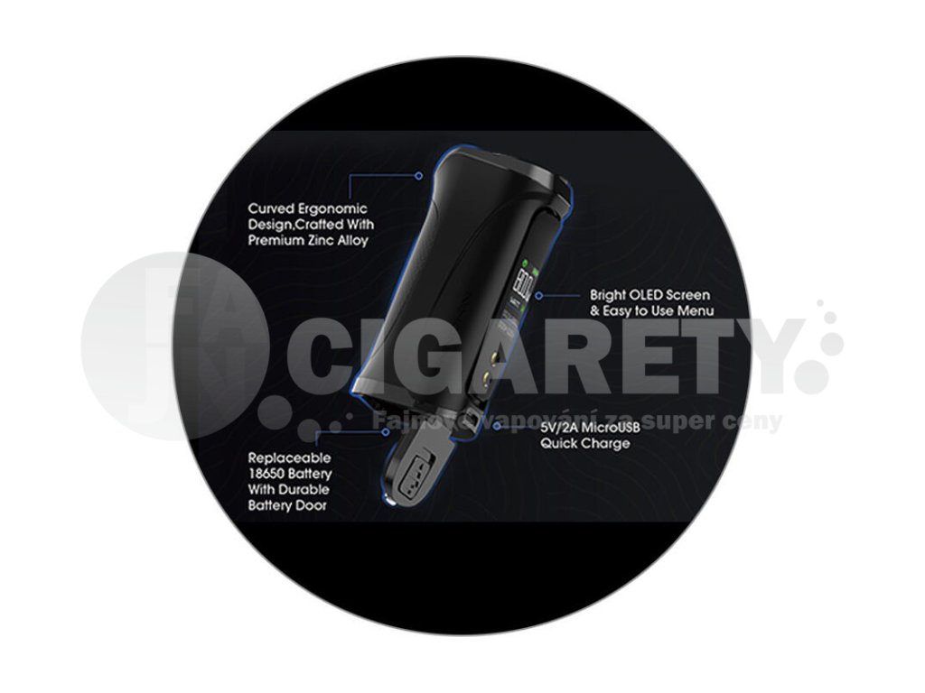 V těle modu najdete slot pro jednu baterii typu 18650. Díky pohonu na jednu baterii si mod poradí s velice slušnou výdrží a bezproblémovým provozem. V případě potřeby nabití navíc můžete baterii ponechat přímo v modu a dobít ji pomocí microUSB portu na těle modu. Baterii lze dobíjet proudem až 2 A. Baterie 18650 není součástí základního balení a je nutné dokoupit ji samostatně.