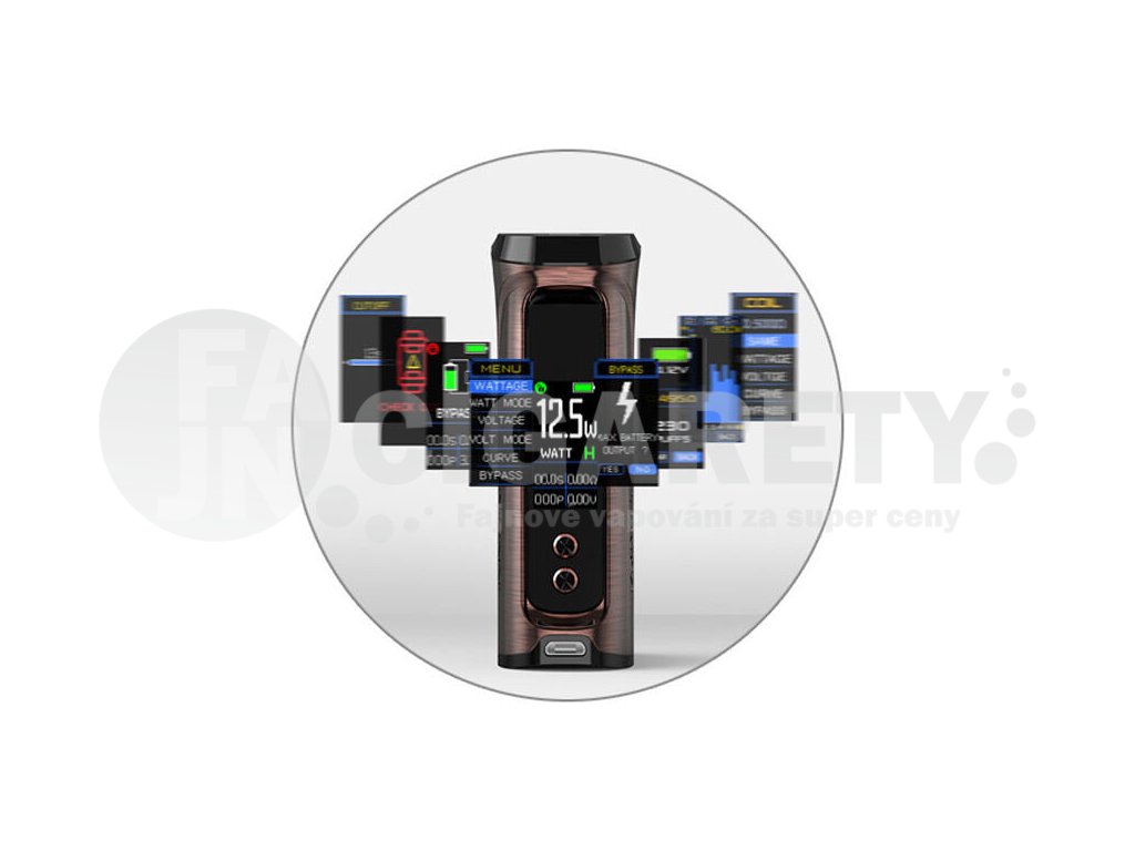Výstupní režimy: VW / VV / Taste režimy (Soft, Norm, Boost), křivka žhavení, Bypass