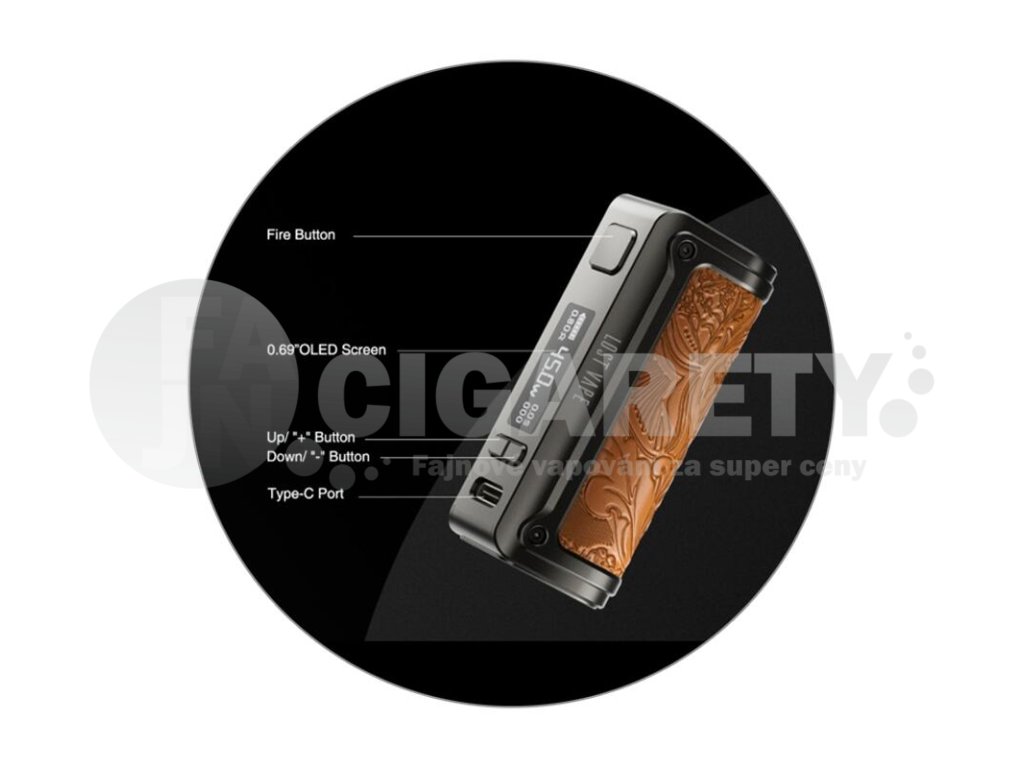 Mod Thelema Mini pokračuje v zaběhnuté tradici výrobce Lost Vape, který si u všech svých zařízení potrpí na překrásné designové zpracování. Můžete se tak těšit na kvalitní kovovou konstrukci modu vyrobenou z kombinace zinkové slitiny a nerezové oceli, kterou doprovází stylový potah zadního panelu z kůže, či karbonu. Už na první pohled budí mod dojem luxusu, jako tomu bývá zvykem i u dalších gripů tohoto renomovaného výrobce.