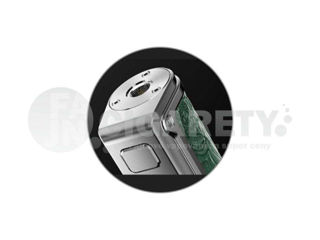 Ve vrchní části modu se nachází standardní závit typu 510, který slouží pro osazení atomizérem. Používat můžete celou řadu atomizérů se stejným typem uchycení závitu. Výrobce doporučuje užívání zejména kompaktnějších atomizérů s průměrem základny mezi 22 - 23 mm, aby nedocházelo ke vzniku nevzhledných přesahů a aby atomizér esteticky ladil s kompaktním modem.