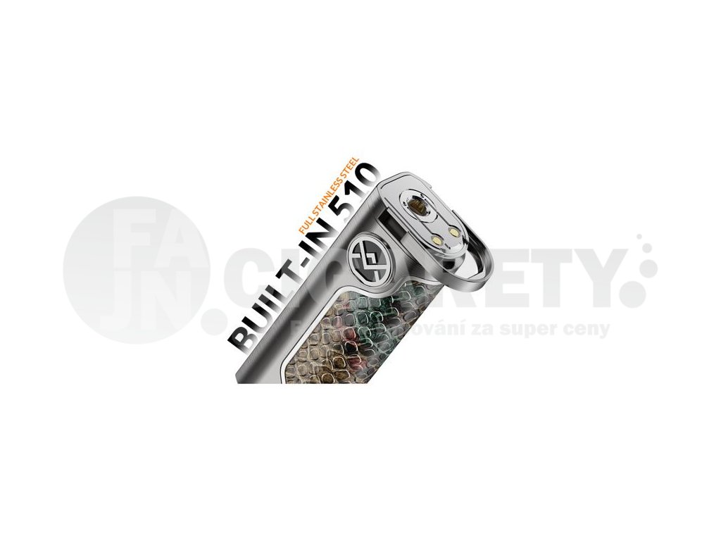 V zadní části těla se nachází kryt, který ukrývá slot pro externí baterii. Zařízení pracuje s jednou baterií typu 18650. Tato baterie není součástí základního balení a je nutné dokoupit ji samostatně. V případě potřeby budete moci baterii pohodlně dobíjet přímo v zařízení díky podpoře USB-C dobíjení. Lze dobíjet proudem až 2 A.