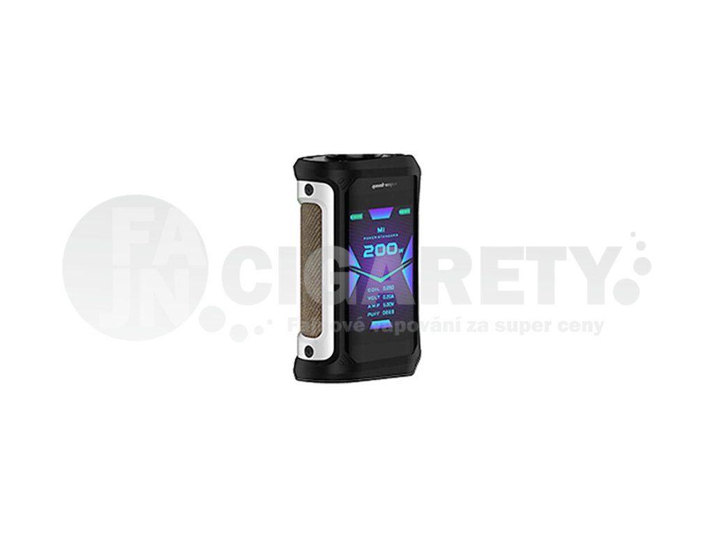 Nejnovější přírůstek do rodiny vynikajících gripů Aegis od renomovaného výrobce GeekVape dostal název GeekVape Aegis X Mod. Jedná se o mod s pokročilými funkcemi a vlastnostmi, ale také luxusním designem a širokým nastavením pro ty nejnáročnější uživatele. Jeho nespornou výhodou je potom také výrazná odolnost vůči vnějším vlivům, zejména vůči vodě, prachu a možnému pádu. Díky svým rozměrům 90 x 31,3 x 56,1 mm a perfektně zpracované, ergonomické konstrukci, skvěle padne do každé ruky a pohodlně se používá v průběhu celého dne. Zadní část modu je opatřena koženým potahem pro příjemné držení v dlani, celé tělo je potom vyrobeno z kovu, který je v přední části potažen speciální pogumovanou vrstvou pro ještě komfortnější používání. Vrchní část modu nabídne závit typu 510 pro pohodlné osazení vlastním atomizérem se stejným typem uchycení závitu. Mod funguje bravurně jak se standardními atomizéry na tovární žhavící hlavy, tak také s motacími DIY atomizéry.