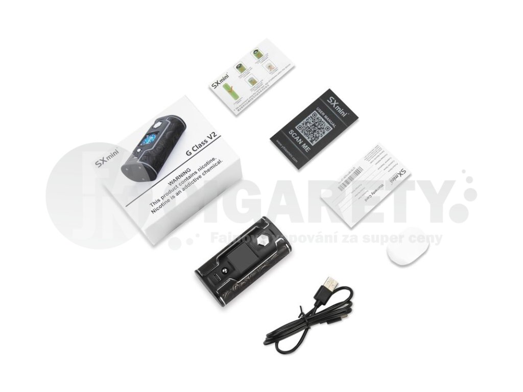 Tělo modu SXmini G Class V2 ukrývá slot pro instalaci dvou baterií typu 18650. Díky pohonu na dvě externí baterie se můžete těšit na extrémní výstupní výkon a hladký chod celého zařízení. Výstupní výkon dosahuje ohromujících 200 W. V případě potřeby můžete baterie také v klidu dobíjet přímo ve vašem modu, v přední části se nachází USB-C port pro rychlé dobíjení proudem až 2A.