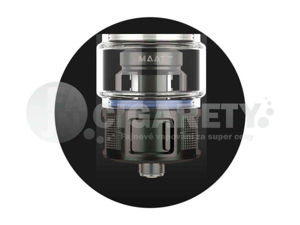 Součástí kompletního balení je oblíbený clearomizér Maat New Tank. Jedná se o přepracovanou a upgradovanou verzi populárního Maat Tanku pro přímé potahování do plic. Clearomizér nabídne obrovský objem 6,5 ml, inovativní vrchní plnění a unikátní systém spodního airflow. Clearomizér se postará o produkci obrovského množství husté a chutné páry a nabídne zcela mimořádný chuťový požitek.