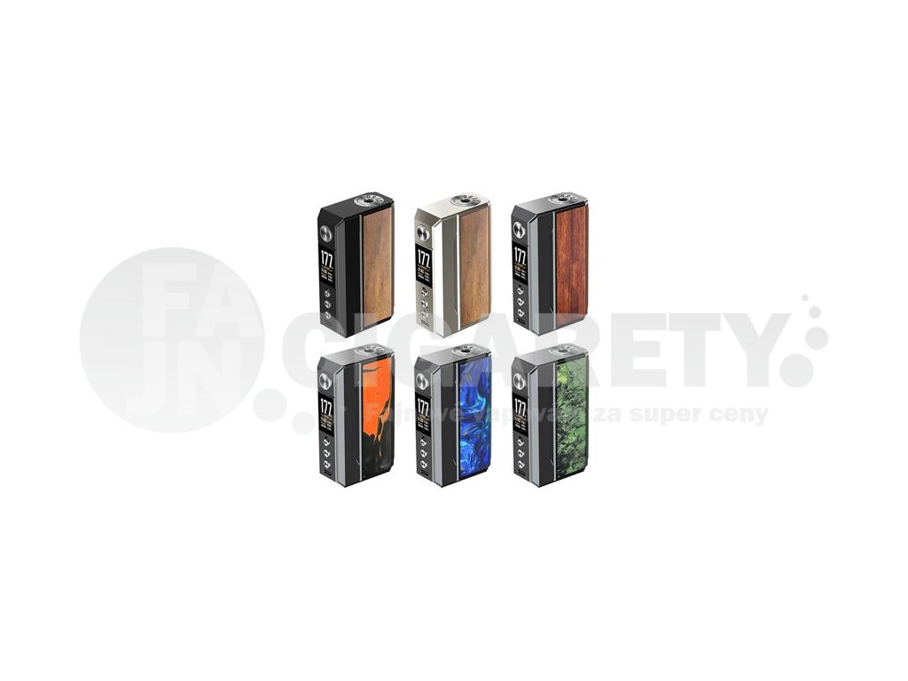 VooPoo Drag 4 Mod je již čtvrtou generací vlajkové lodě Drag, série pokročilých gripů výrobce VooPoo. Na pomyslný vrchol nabídky výrobce ho potom řadí celá řada prvků, mezi nejvýznamnějšími lze jmenovat hlavně kvalitní čip GENE.TT 2.0, podporu extrémně rychlého nabíjení 3A, nebo široký výběr režimů a možnost konfigurace manuálního QS zámku. Při prvním seznámení s gripem Drag 4 vás však zaujme zejména jeho design. Tradiční box mod tělo s rozměry 89 x 52.4 x 25.4 mm je vyrobeno z kombinace zinkové slitiny a kůže na zadním panelu. Boční panely potom zdobí tři rozdílné materiály dle barevného zpracování - resin, palisandrové dřevo, nebo ořechové dřevo. Tělo modu s překrásným a luxusním designem ukrývá slot pro vložení dvou baterií typu 18650, které se postarají o extrémní výkon, jenž dosahuje až 177 W. Baterie můžete pohodlně dobíjet přímo v modu prostřednictvím 5V / 3A USB-C portu v přední části.