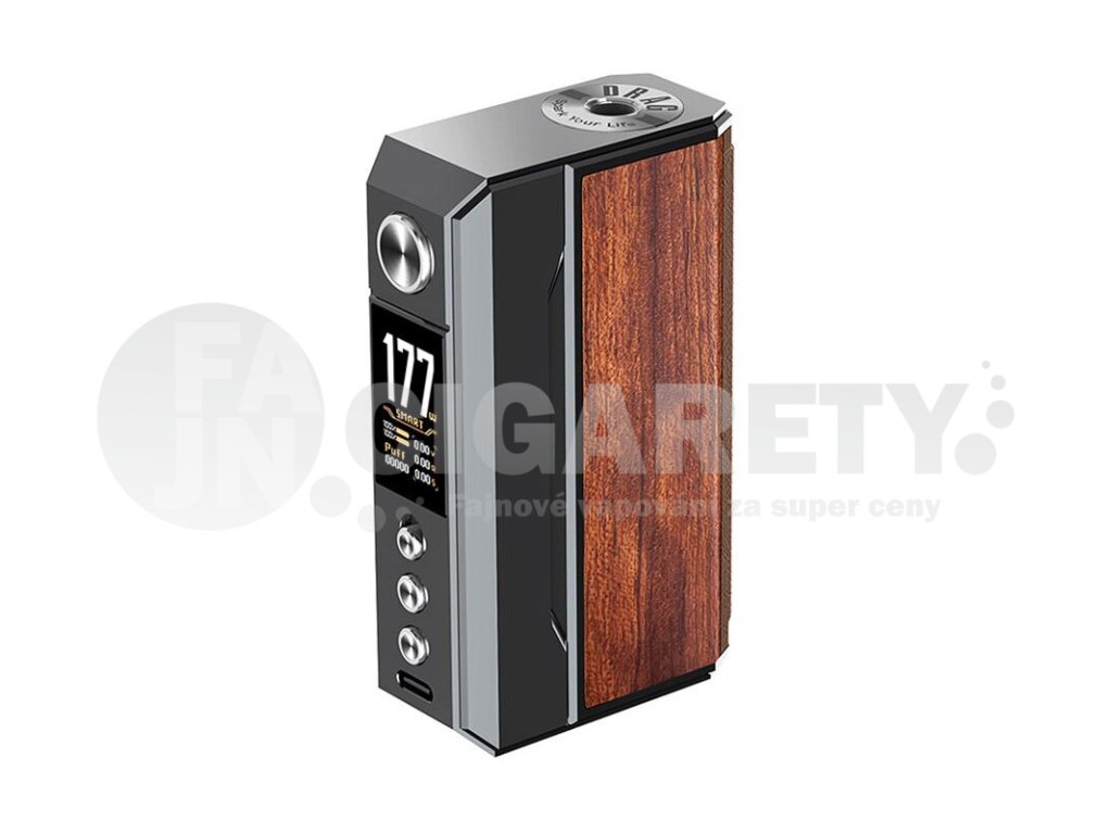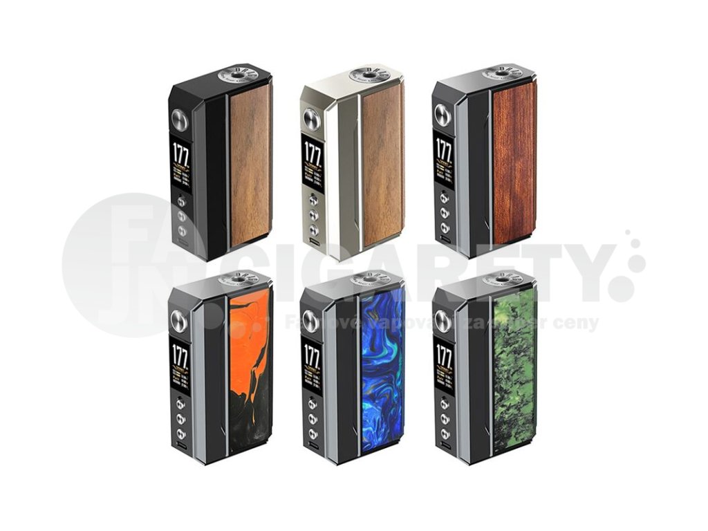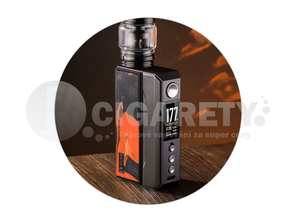 VooPoo Drag 4 Mod je již čtvrtou generací vlajkové lodě Drag, série pokročilých gripů výrobce VooPoo. Na pomyslný vrchol nabídky výrobce ho potom řadí celá řada prvků, mezi nejvýznamnějšími lze jmenovat hlavně kvalitní čip GENE.TT 2.0, podporu extrémně rychlého nabíjení 3A, nebo široký výběr režimů a možnost konfigurace manuálního QS zámku. Při prvním seznámení s gripem Drag 4 vás však zaujme zejména jeho design. Tradiční box mod tělo s rozměry 89 x 52.4 x 25.4 mm je vyrobeno z kombinace zinkové slitiny a kůže na zadním panelu. Boční panely potom zdobí tři rozdílné materiály dle barevného zpracování - resin, palisandrové dřevo, nebo ořechové dřevo. Tělo modu s překrásným a luxusním designem ukrývá slot pro vložení dvou baterií typu 18650, které se postarají o extrémní výkon, jenž dosahuje až 177 W. Baterie můžete pohodlně dobíjet přímo v modu prostřednictvím 5V / 3A USB-C portu v přední části.