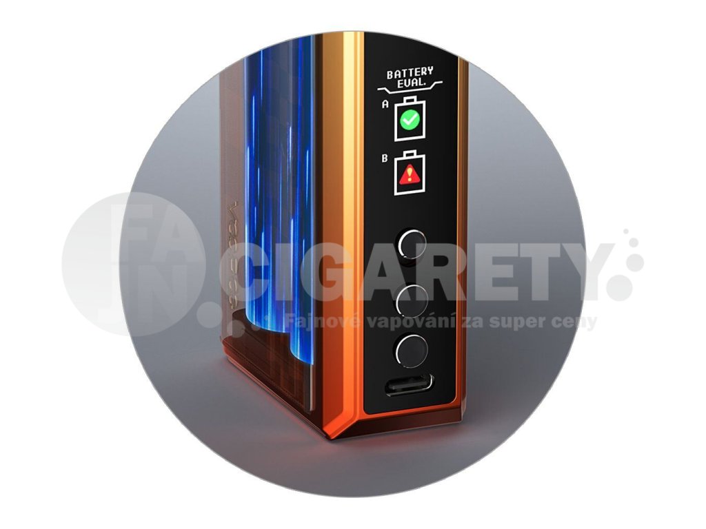 Tělo modu pracuje se dvěma bateriemi typu 18650. Tyto baterie si můžete pohodlně nainstalovat odklopením celého krytu těla. Kryt C-Frame krásně obepíná celé tělo modu a osazení bateriemi je tak jednodušší, než kdy předtím. Díky silným magnetickým úchytům navíc perfektně a stabilně drží na těle konstrukce.