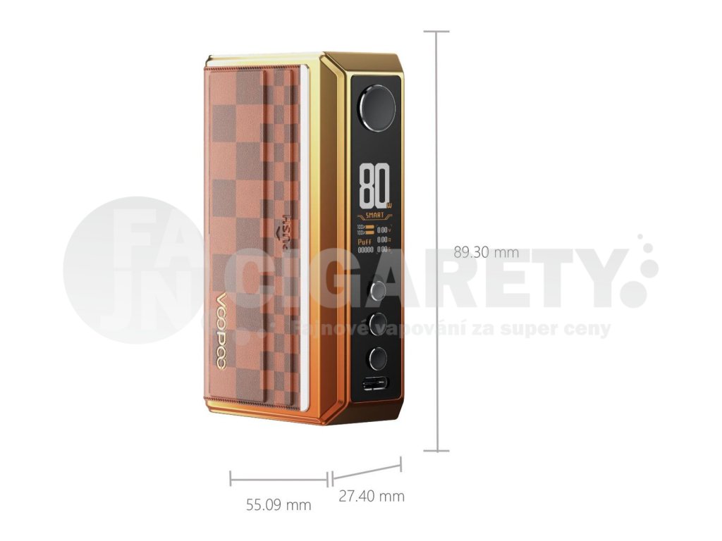 VooPoo Drag 5 navazuje na designový úspěch svých předchůdců a představuje se opět v krásně zpracovaném, luxusním a stylovém těle s jedinečnými barevnými variantami a moderními vzory. Nádherně zpracovaný mod nabídne tradiční box konstrukci a všechny oblíbené prvky, které můžete znát z minulých modelů. Zejména potom krásný displej a ergonomicky umístěné tlačítko na předním ovládacím panelu. Drag 5 je ukázkou precizního návrhářství výrobce VooPoo.