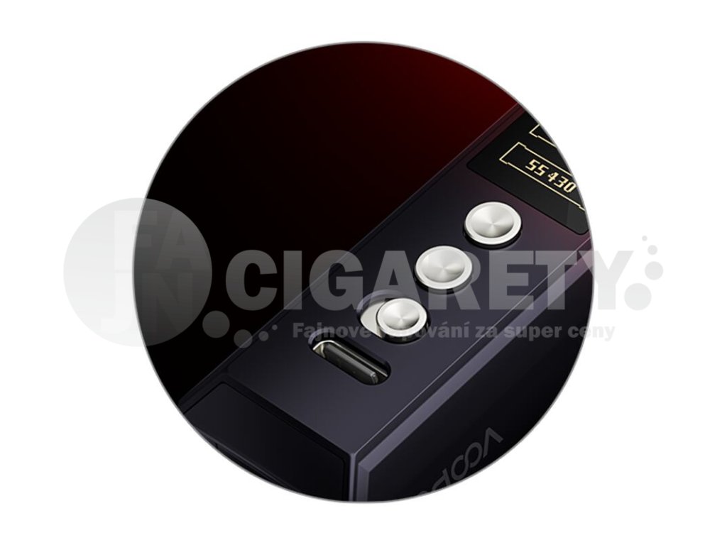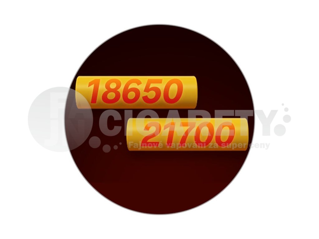 V těle modu najdete slot pro vložení jedné externí baterie. Mod pracuje s bateriemi typu 21700, případně s klasickými bateriemi 18650 po použití adaptéru. Díky slotu pro externí baterii nabídne mod svobodu při výběru vlastního specifického článku pro co nejlepší výsledky při vapování. Samozřejmostí je potom také podpora rychlého nabíjení baterie přímo uvnitř modu, stačí jen připojit USB-C kabel a začít dobíjet proudem až 2.5 A.