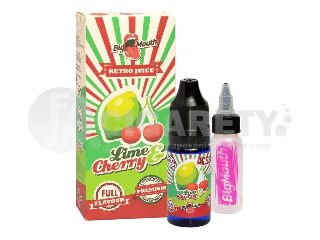 Sladkokyselá kombinace limetky a třešní... Příchutě Big Mouth jsou jedny z nejlepších příchutí pro tvorbu vlastních liquidů. Součástí designového balení je 10ml lahvička s příchutí a 30ml lahvička pro namíchání liquidu. Výroba probíhá za nejpřísnějších hygienických standardů ve farmaceutické laboratoři. Jedná se o koncentrát, který se kape do báze. Příchuť může být použita pouze jako aroma do bází....nejedná se o hotový liquid.