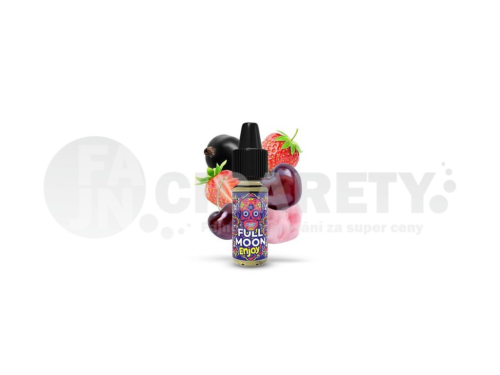 Užijte si dokonalou směs chutí s novou příchutí Enjoy od výrobce Full Moon. Tato příchuť ukrývá neodolatelnou kombinaci svěžího citronu, jemně nakyslého černého rybízu, sladkých jahod a šťavnatých třešní. Všechny tyto ovocné plody jsou potom zahaleny sladkým kabátem v podobě cukrové vaty. Jemná a sladká chuť ovocné cukrové vaty vás zaujme už při pouhém otevření lahvičky.