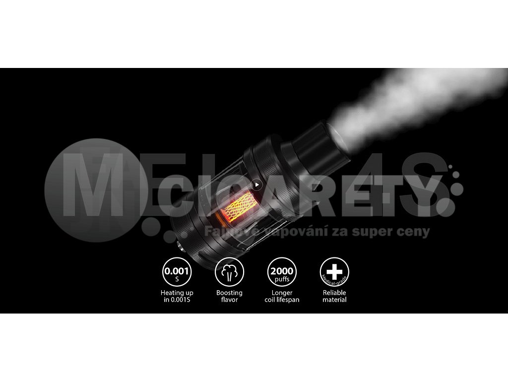 Nástupce oblíbeného iStick Pico, tentokrát s přívlastkem Plus. Vysoký nastavitelný výkon až 75W, na baterie typu 18650, rychlé USB-C nabíjení, OLED displej, Grip je osazen inovativním Clearomizérem Eleaf mělo 4S s kapacitou 4ml, horním plněním, plynulou regulaci Airflow. Zcela nové žhavící hlavy Eleaf EC-A z nerezové oceli AST, které jsou kompatibilní s řadou EC. 2x žhavící hlava EC-A v SETU, závit 510. Baterie nejsou součástí balení. Barevné provedení Black.