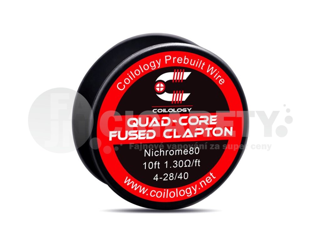 Coilology Quad-core Fused Clapton Ni80 je vysoce kvalitní odporový drát renomovaného výrobce Coilology. Drát je vhodný pro výrobu spirálek určených k DL vapingu. Drát je vyrobený z nichromu, přičemž jeho jádro nabídne hned čtyři odporové dráty s průměry 0,3 mm (28GA), které jsou omotány tenkým drátem s průměrem 0,08 mm (40GA). Drát je určený pro používání v režimu výkonu. Nelze ho použít pro teplotní režimy.