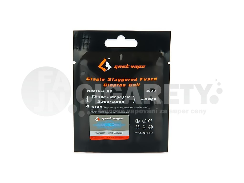 Již hotové předmotané spirálky Fused Clapton od výrobce GeekVape, jsou konstrukčně vhodné pro všechny druhy vapování. Provedení Clapton pak zaručuje produkci velkého množství páry, díky větší odpařovací ploše. Spirálky GeekVape - Fused Clapton jsou vyrobeny z odporového drátu Kanthal A1 a nichromu Ni80. Vnitřní dvojitý kanthalový drát pak zaručuje delší životnost spirálky. Celkový odpor jedné spirálky je pak 0,9 Ω.