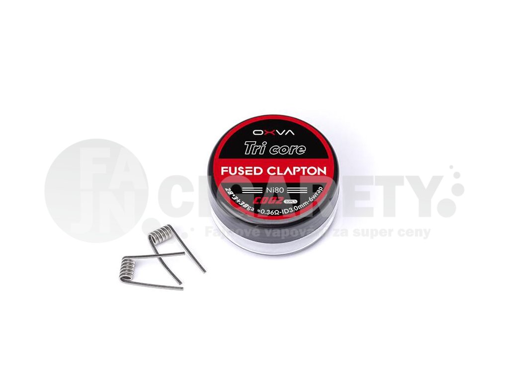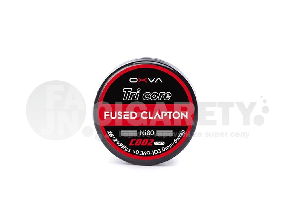 Předmotané spirálky OXVA Tri Core Fused Clapton disponují odporem ≈0,36 ohm. Jsou vyrobeny z nichromu. Jsou tvořeny třemi odporovými nichromovými dráty v jádru (28GA*3), které jsou omotané tenkým nichromovým drátem s průměrem 0,1 mm (38GA).
