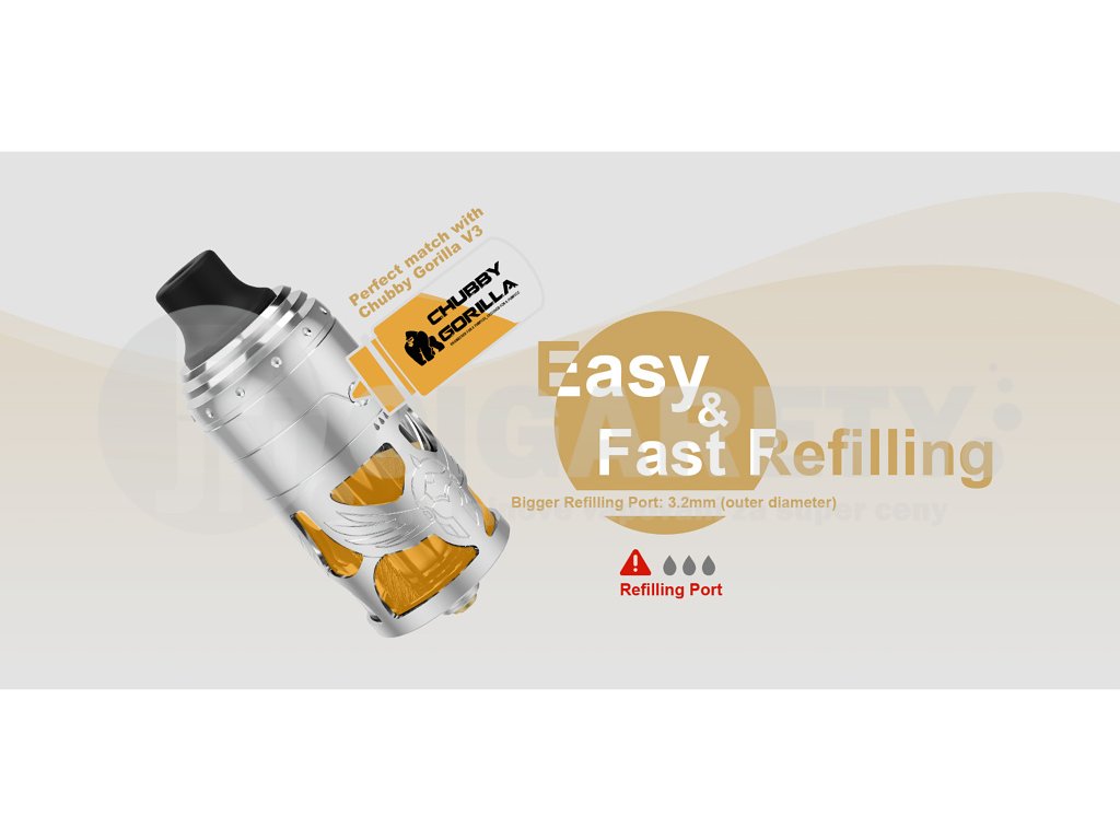 Vapefly vám zprostředkuje mimořádný chuťový zážitek a umožní vychutnat si volnější, ale také utaženější MTL potah. Vapefly má jedinečný dokapávací atomizér pro klasické šlukování. Jedná se o inovativní novinku renomovaného výrobce. Vapefly se též zabývá výrobou 100% organické bavlny s vysokou odolností.