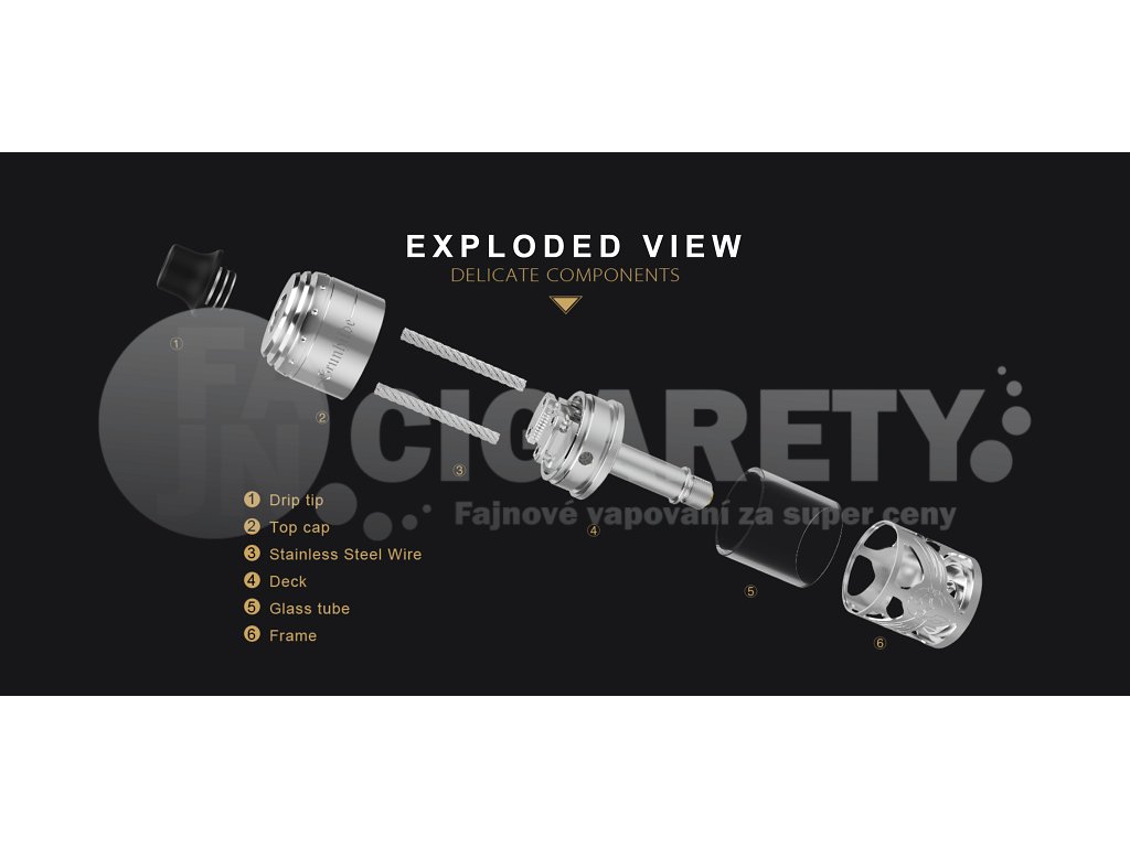 Špičkový RTA atomizér Vapefly Brunhilde, speciálně navržený pro MTL vapování. Vyroben z kvalitní nerezové oceli a rozměrech 59,5 x 23mm. Objem 5ml, závit 510. Top Coiler (Žhavící spirála se nachází v horní části atomizéru). Regulace Airflow.novinky2705