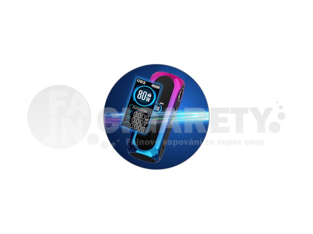 Baterii budete moci kdykoliv pohodlně dobít díky portu micro USB. Lze dobíjet proudem až 1,6 A. Mod OBS Cube Pro FP disponuje technologií snímače otisků prstů. Tento snímač je zabudovaný přímo ve spínacím tlačítku. Slouží pro bezpečné uzamčení a odemčení gripu. Díky této funkci nebude moci grip využívat kdokoliv jiný, než právě vy. V boční části potom najdete obrovský displej pro snadné nastavení celého zařízení. Nespornou výhodou je potom jednoduchost. OBS Cube Pro FP Mod umožňuje regulaci výstupního výkonu v rozpětí 5 - 80 W. Žádné další složité nastavení není potřeba. Díky závitu 510 ve vrchní části je navíc kompatibilní s drtivou většinou atomizérů na dnešním trhu. Mod je k dostání v celé řadě barevných variant, z nichž si zaručeně vybere každý.