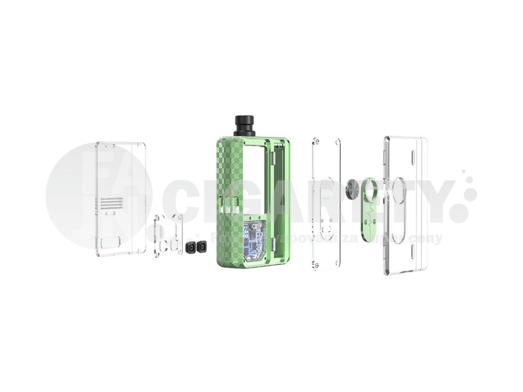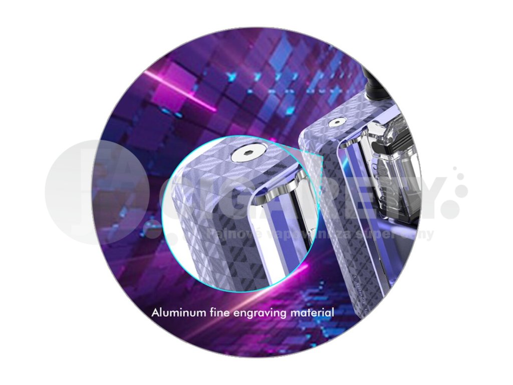 Kvalitní kovová konstrukce z hliníkové slitiny se speciální povrchovou úpravou dodá celému zařízení nejen luxusní vzhled, ale také skvělou odolnost. Materiál je navíc velmi lehký, celková hmotnost e-cigarety se proto zastavila na krásných 122 g. Díky praktickým rozměrům 77.3 x 51 x 23.4 mm se navíc také pohodlně přenáší a příjemně se drží v dlani.