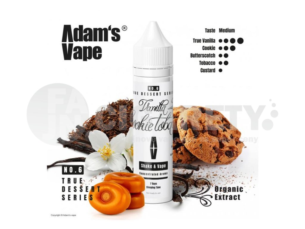 Adam's Vape je česká společnost zabývající se výrobou chutných příchutí pro e-cigarety. Všechny příchutě Adam's vape jsou vyráběny čistě na území České republiky a prochází všemi potřebnými kontrolami pro uvedení na mezinárodní trh. Jsou vyráběny z těch nejkvalitnějších surovin na trhu a prochází celou řadou testů. Jedná se o příchutě typu shake & vape. Série dezertových aromat True Dessert Series je dodávána ve velkých 60 ml lahvičkách, ve kterých se nachází příchuť pro smíchání s bází.