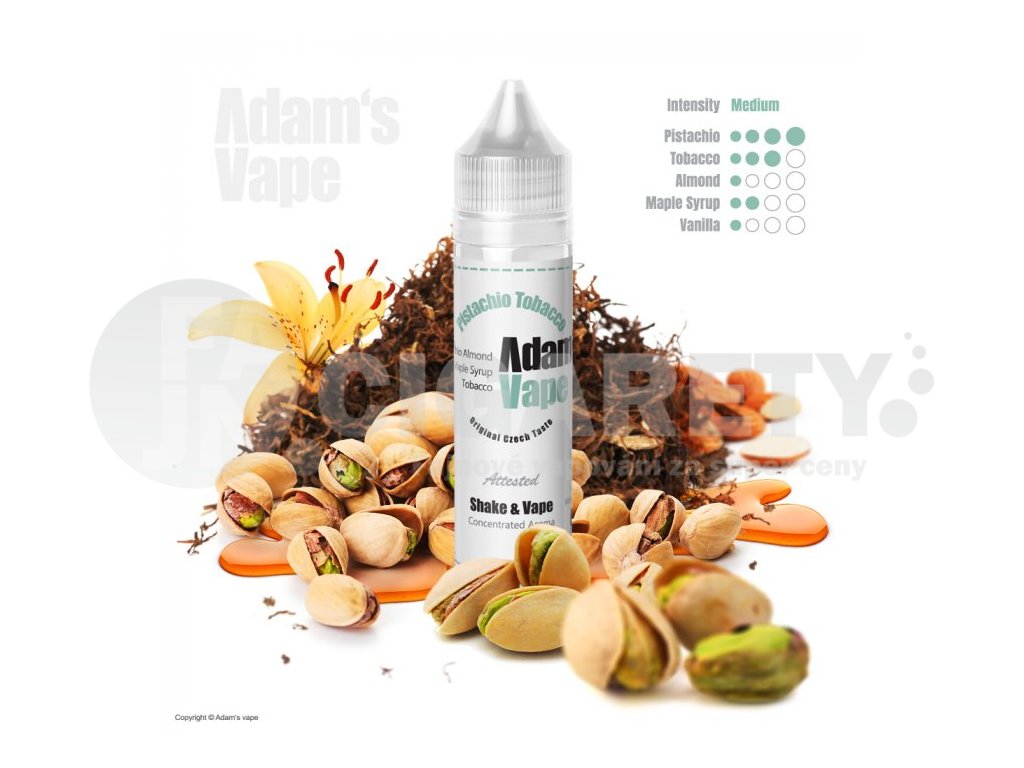 Pistáciový tabák s javorovým sirupem... Vyladěné příchutě od českého výrobce Adam´s Vape. Příchutě jsou dodávány v 60ml plastových lahvičkách, které obsahují 12ml koncentrátu. Uživatel tak pouze přidá bázi do lahvičky, zatřese s ní a má hotový e-liquid.... Jedná se o koncentrát, který se kape do báze. Výroba probíhá za nejpřísnějších hygienických standardů ve farmaceutické laboratoři....nejedná se o hotový liquid.