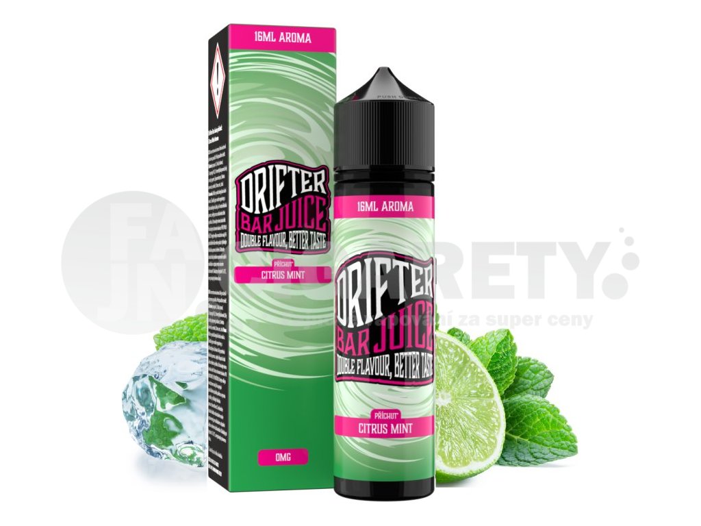 Oblíbená kombinace citrusů a máty... Prémiové britské liquidy Drifter Bar od Juice Sauz nyní i jako příchutě S&V. Jsou dodávány v 60ml lahvičkách, které obsahují 16ml koncentrátu. Uživatel tak pouze přidá bázi do lahvičky, zatřese s ní a má hotový e-liquid.Výroba probíhá za nejpřísnějších hygienických standardů ve farmaceutické laboratoři. Jedná se o koncentrát, který se kape do báze. Příchuť může být použita pouze jako aroma do bází....nejedná se o hotový liquid.