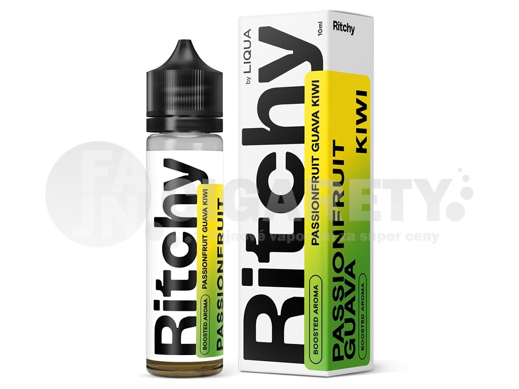 Tato příchuť Vás uchvátí explozí tropického ovoce. Sladká a kyselá marakuja se snoubí s aromatickou guavou a šťavnatým kiwi, čímž vytváří neodolatelnou kombinaci plnou svěžesti a exotiky. Jemný chladivý efekt na závěr dodává tomuto chuťovému dobrodružství příjemný šmrnc. Příchuť v Shake and Vape balení, kdy můžete ihned po namíchání vapovat. Obsahuje 10ml příchutě v 60ml lahvičce s odnímatelným kapátkem. Nejedná se o hotový liquid a pro použití je potřeba naředit obsah příslušnou bází. Výrobce Ritchy Liqua, Česká republika.