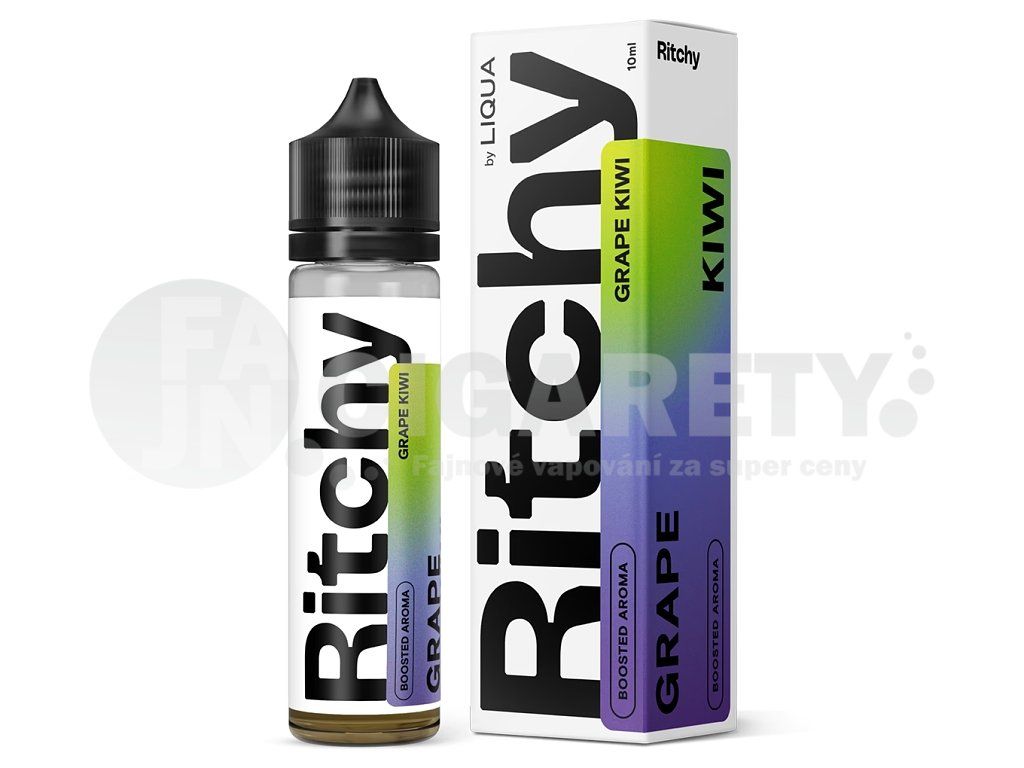 Samotné Shake & Vape balení obsahuje 10ml vysoce koncentrované uvedené příchuťě, kterou jen doplníte bází s nikotinem (případně jen samotnou bází) do celého objemu 60ml lahvičky. Samotná příchuť Ritchy by Liqua nikotin neobsahuje a slouží pouze jako finální nosič chuti výsledného e-liquidu.