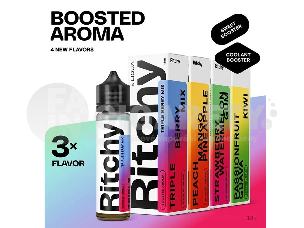 3x více chuti, booster sladké chuti, booster chladivosti. To vše přináší zbrusu nové Shake & Vape renomovaného výrobce e-liquidů společnosti Ritchy Liqua. Nechte se unášet bohatou paletou chutí a vůní, které vám přináší Ritchy S&V od prestižní evropské společnosti Liqua. Tyto jedinečné ovocné směsi, vyrobené s láskou a péčí z těch nejkvalitnějších surovin v srdci EU, zaručeně uspokojí i ty nejnáročnější vapery.