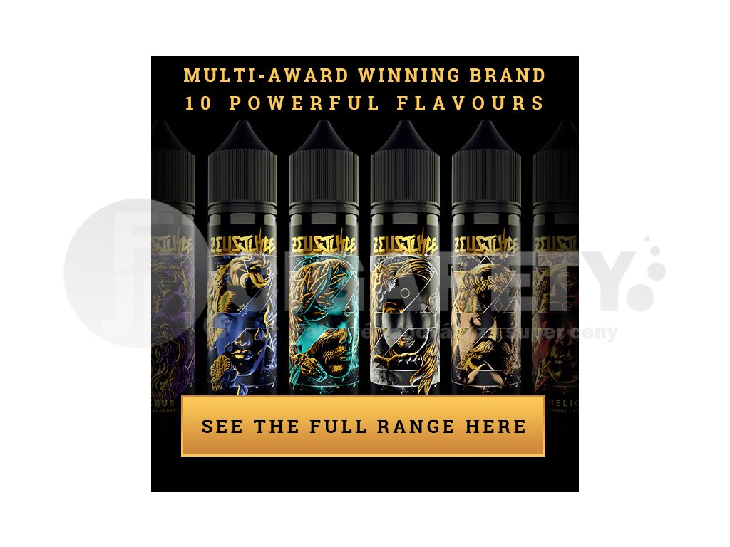"Od té doby Zeus Juice stojí hrdě na vrcholu Olympu a dodává vaperům nadpozemskou sílu, aby se dokázali odvrátit od klasického kouření. Obrázek každé lahvičky poskytuje okno k zázrakům, které se nachází uvnitř, z nichž každý je reprezentován svým vlastním božstvem. Každá příchuť má hlubokou symboliku a vypráví příběh, stejně jako má svůj příběh každý vaper na své vlastní cestě k vítězství..."