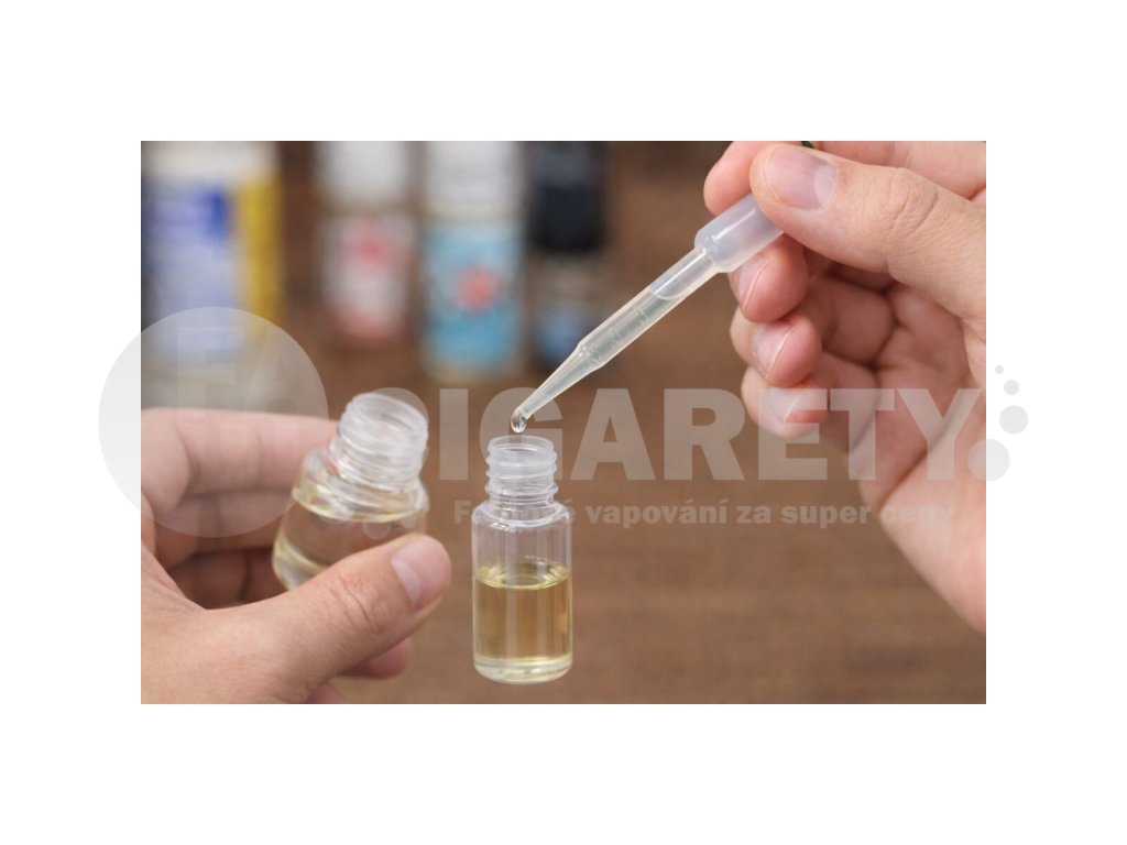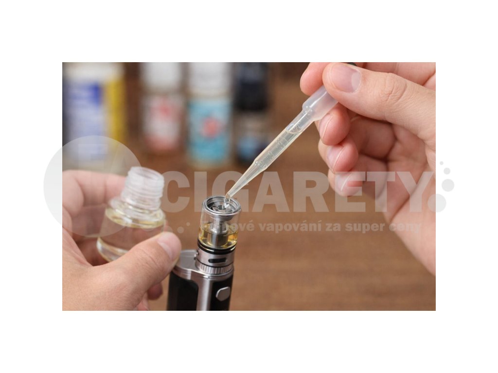 Praktickým pomocníkem při míchání e-liquidů bude tato jednoduchá plastová pipeta. Klasickou jednorázovou pipetu nabízíme ve třech různých objemech. Pomocí pipety snadno a rychle odměříte požadované množství tekutin, jako je báze nebo příchuť. Pouze s přesně odměřeným množstvím jednotlivých látek a směsí se vám podaří namíchat perfektní e-liquid. Pipeta je vyrobena z měkkého plastu, takže se velmi dobře mačká a pohodlně se užívá.
