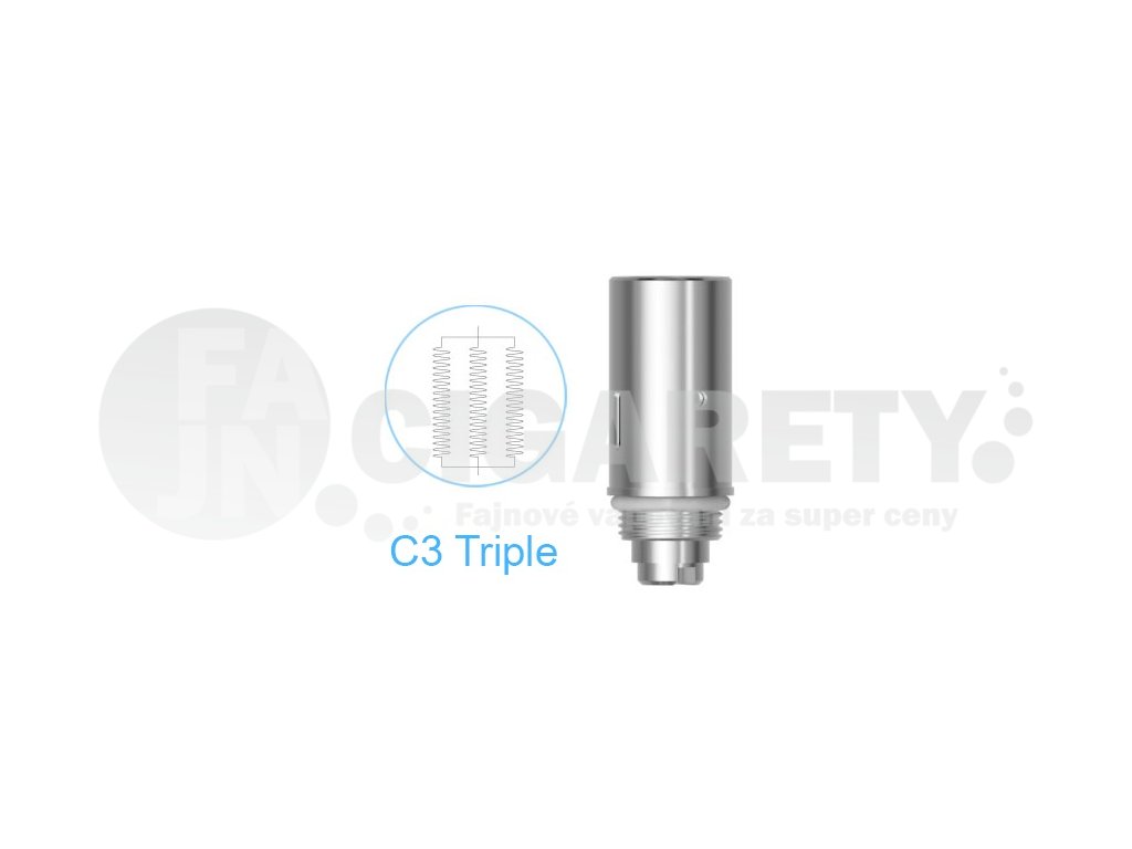 Náhradní žhavící tělísko C3 Triple nabízí odpor 1,4 ohm. V jádru se nachází speciální trojitá spirálka pro jemné podání chuti a optimální kouřivost. Tělísko je konstrukčně navrženo pro co nejvýraznější podání chuti. Tělísko C3 Triple je určeno pro klasické šlukování (